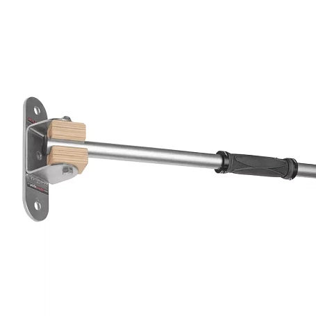 Hrazda Na stěnu rohová je lehká univerzální hrazda pro posilování zádových partií, ramen a paží za pomoci přítahů. Tyč hrazdy je kovová a rovná s protiskluzovými gripy. Tento model je vyroben pro stálé ukotvení na stěnu, speciálně do rohu.