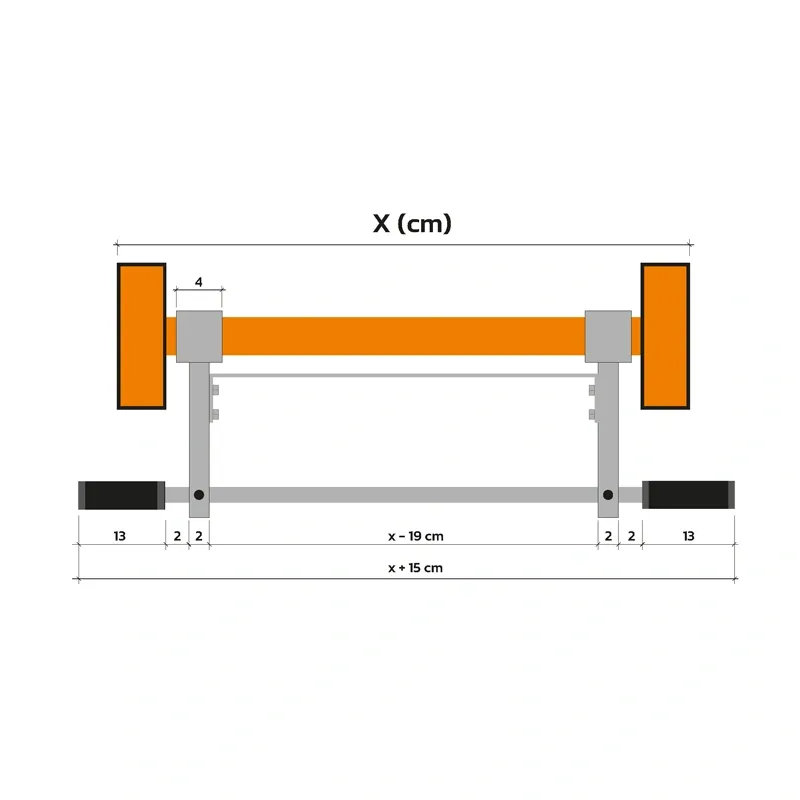- pro správné zavěšení hrazdy na žebřiny (skrze bezpečné zatížení šprušlí) je důležité vybrat příslušnou šíři hrazdy. Šíře hrazdy (nikoli délka tyče hrazdy) je vždy uvedena pro vnější rozměr žebřin.