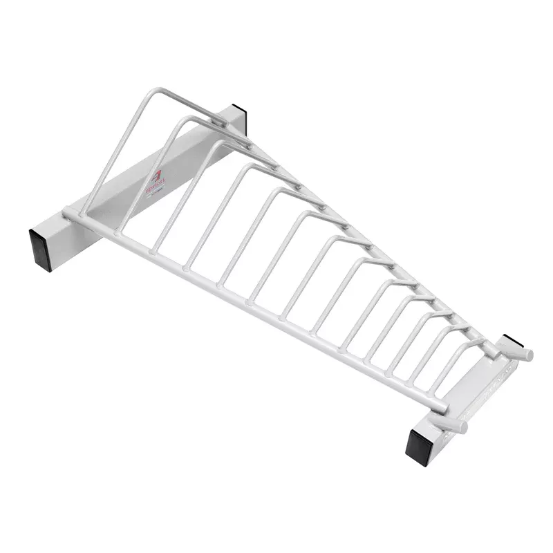 Stabilní kovový odkládací stojan na fitness kotouče určený pro každou posilovnu, ve které má být vše ihned k dispozici a přitom vždy uklizeno. Doporučeno zakoupit v páru. Uložení až 14 ks závaží.